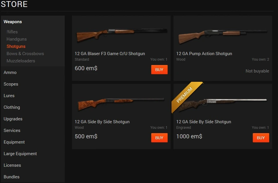 Wichtig: Mitgliedschaften, virtuelles Geld (em$ und gm$) können hier nicht gekauft werden, sondern bis auf die gm$ nur im Hunterstore!