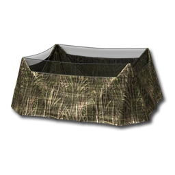 | Dieses spezielle Tarnzelt ist extra für die Wasservögeljagd entworfen worden und eignet sich daher besonders gut für diese Zwecke. Der Jäger hat eine gute Tarnung, aber dennoch eine freie Sicht auf fast den ganzen Himmel zu allen Seiten. Fliegendes Wild kann so ideal bejagt werden.