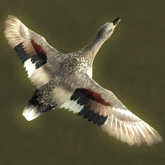 Die Schnatterente wurde als die 29. Tierart in das Spiel eingeführt. Seit dem Update vom 18.11.2015 kann man sie auf Rougarou Bayou bejagen.