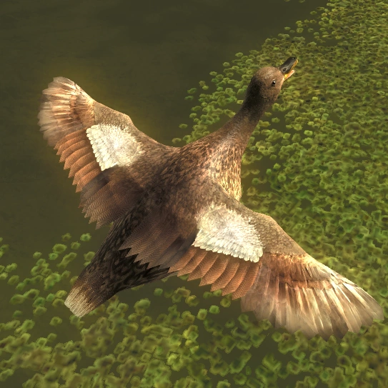 Beim Spielstart befinden sich einige Enten verteilt in der Landschaft (Rougarou Bayou) am Boden, also schwimmen auf Wasserflächen, die ihnen zusagen. Dabei sind sie friedlich mit der Nahrungsaufnahme beschäftigt, geben aber regelmäßig Kontaktrufe von sich, die auch mit dem Huntermate registriert werden können und somit zur Lokalisation dienen können.