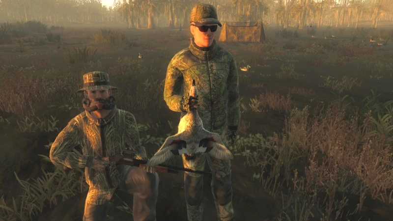 In multiplayer mode you can lure more geese when one player uses the Long Range Caller and another uses the Flag Lure. This type of luring effect increase is not possible when hunting ducks.