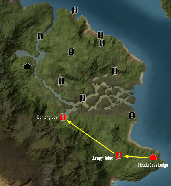 Then arrive at Banteng Bay (X: 5595, Y: 8783) in the same hunt.